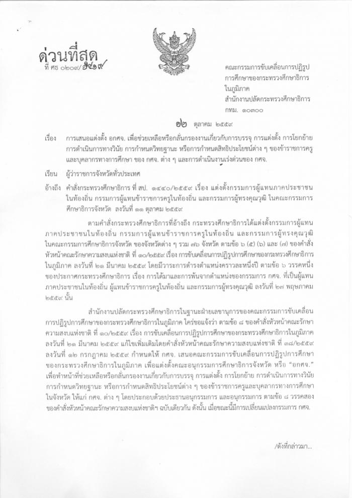 (Update) คำสั่งคณะกรรมการขับเคลื่อนการปฏิรูปการศึกษาของกระทรวงศึกษาธิการในภูมิภาค ที่ ศธ 0209/1419 เรื่องการเสนอแต่งตั้ง อกศจ. เพื่อช่วยเหลือ