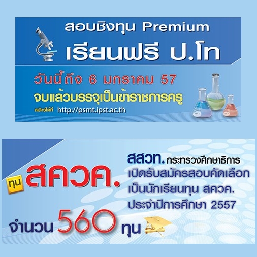 รับสมัครสอบคัดเลือกเข้าเป็นนักศึกษาทุนโครงการส่งเสริมการผลิตครูที่มีความสามารถพิเศษทางวิทยาศาสตร์และคณิตศาสตร์ (สควค.) ระดับปริญญาโททางการศึกษา (ทุน Premium) ประจำปีการศึกษา 2557