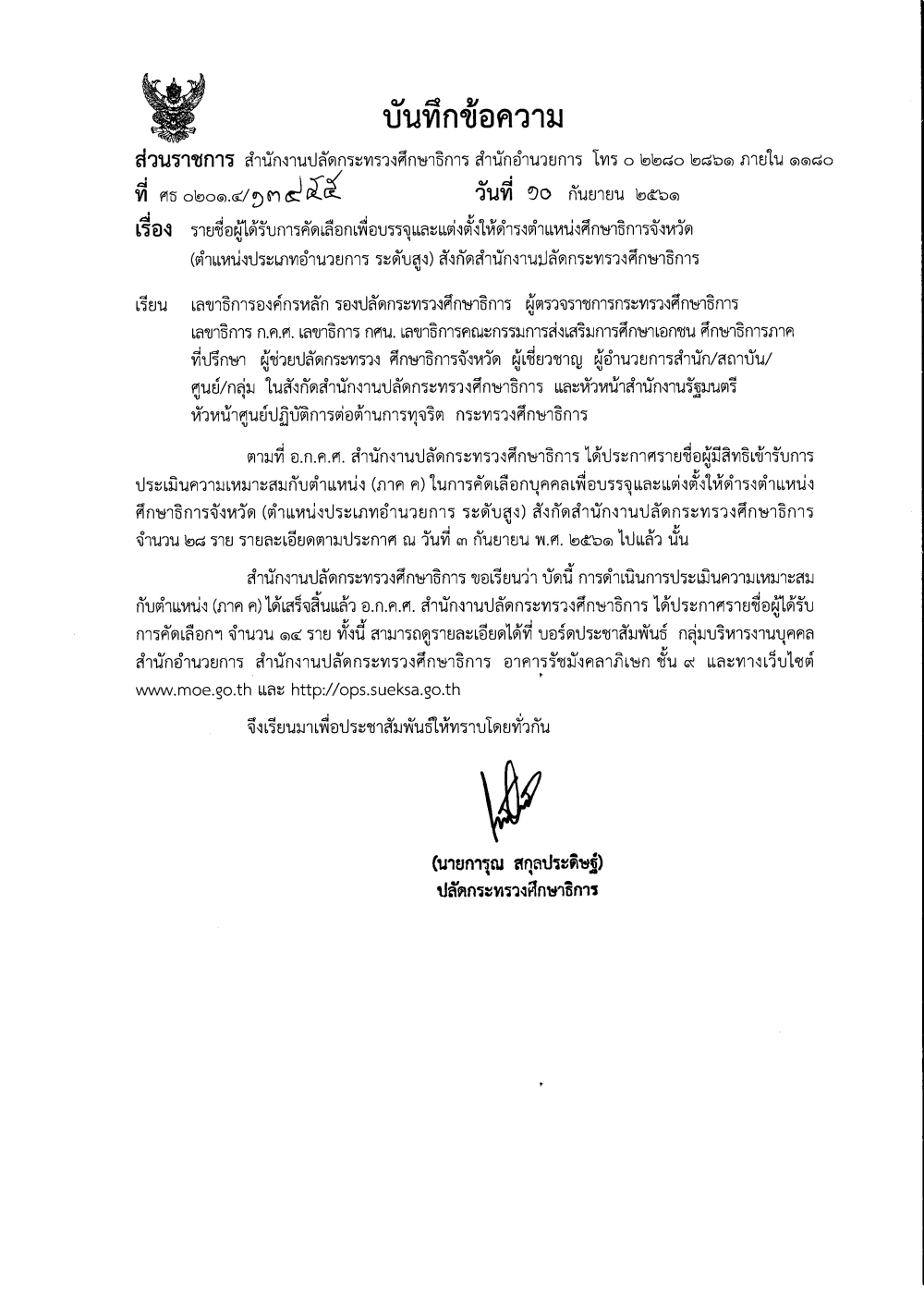 ประกาศ อ.ก.ค.ศ. สำนักงานปลัดกระทรวงศึกษาธิการ