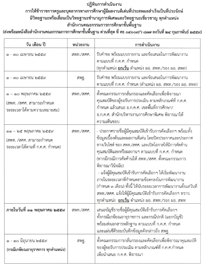 สำนักงานคณะกรรมการการศึกษาขั้นพื้นฐาน มีหนังสือ ด่วนที่สุด ที่ ศธ 04009/ว 837 วันที่ 24 กุมภาพันธ์ 2559 เรื่อง การให้ข้าราชการครูและบุคลากรทางการศึกษาผู้มีผลงานดีเด่นที่ประสพผลสำเร็จเป็นที่ประจักษ์มีวิทยฐานะหรือเลื่อนเป็นวิทยฐานะชำนาญการพิเศษและวิทยฐานะเชี่ยวชาญ ทุกตำแหน่ง