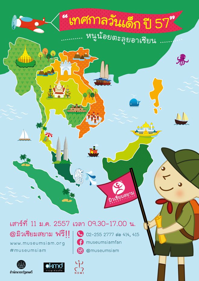 มิวเซียมสยามชวนน้องๆ หนูๆ มาร่วมสนุกกับเทศกาลวันเด็กปี 2557 ในตอน “หนูน้อยตะลุยอาเซียน” พบกับการผจญภัยบนเกมบอร์ดใหญ่ยักษ์ การแสดงบนเวที และกิจกรรมอื่นๆ อีกมากมาย ที่จะพาทุกคนไปรู้จักกับเพื่อนบ้านในอาเซียน วันเสาร์ที่ 11 มกราคม 2557 เวลา 9.30-17.00 เข้าร่วมงานและเข้าชมมิวเซียมสยาม ฟรี!! :-)