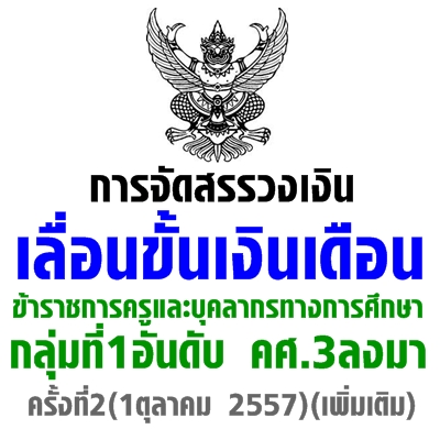 ที่ ศธ 04009/ว719 การจัดสรรวงเงินเลื่อนขั้นเงินเดือนของข้าราชการครูและบุคลากรทางการศึกษา กลุ่มที่1อันดับ คศ.3ลงมาครั้งที่2(1ตุลาคม 2557)(เพิ่มเติม)