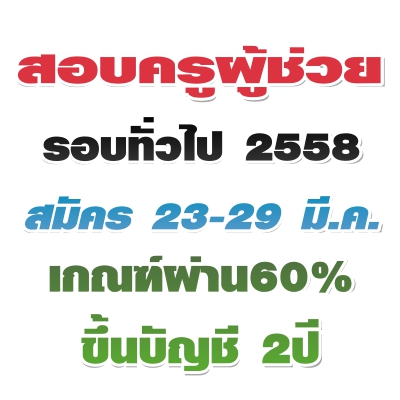 เปิดรายชื่อ 64 เขตพื้นที่พร้อมสาขาวิชาเอกที่เปิดสอบบรรจุครูผู้ช่วย รอบทั่วไป ปีพ.ศ.2558