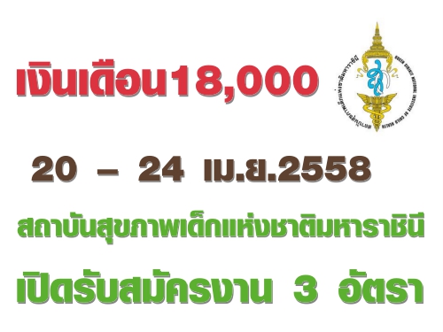 สถาบันสุขภาพเด็กแห่งชาติมหาราชินี เปิดรับสมัครงาน 3 อัตรา เงินเดือน 18,000 บาท
