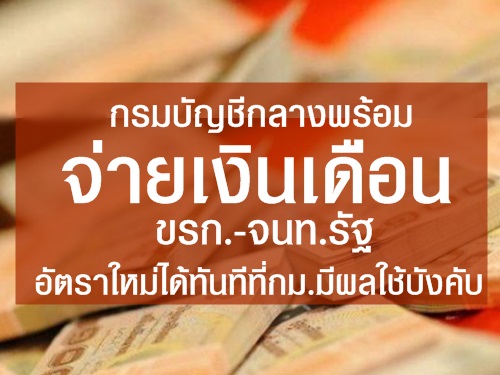 กรมบัญชีกลางพร้อมจ่ายเงินเดือน ขรก. จนท.รัฐ ยันจ่ายอัตราใหม่ได้ทันทีที่กม.มีผลใช้บังคับ