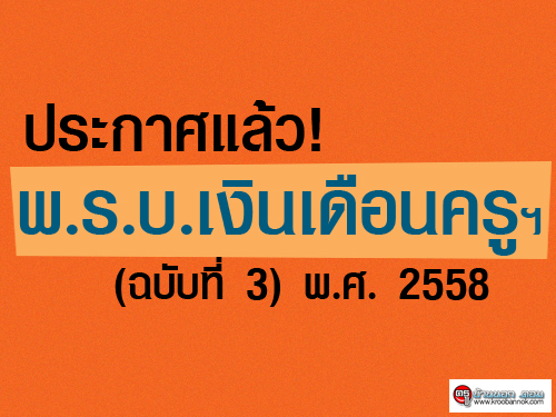 ประกาศแล้ว! พระราชบัญญัติ เงินเดือน เงินวิทยฐานะ และเงินประจำตำแหน่ง ขรก.ครูฯ (ฉบับที่3) พ.ศ.2558