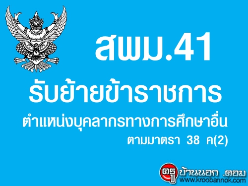 ประกาศ สำนักงานเขตพื้นที่การศึกษามัธยมศึกษา เขต 41 เรื่อง รับย้ายข้าราชการครูและบุคลากรทางศึกษา ตำแหน่งบุคลากรทางการศึกษาอื่น ตามมาตรา 38 ค(2)