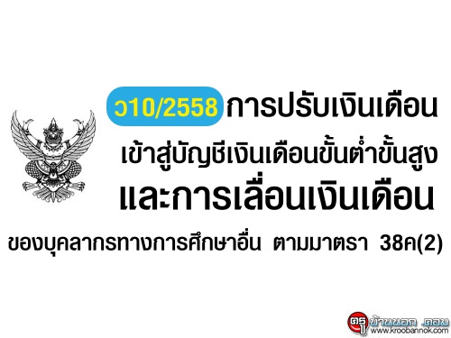 ว10/2558 การปรับเงินเดือนเข้าสู่บัญชีเงินเดือนขั้นต่ำขั้นสูงและการเลื่อนเงินเดือนของข้าราชการครูและบุคลากรทางการศึกษา ตำแหน่งบุคลากรทางการศึกษาอื่น ตามมาตรา 38 ค.(2)