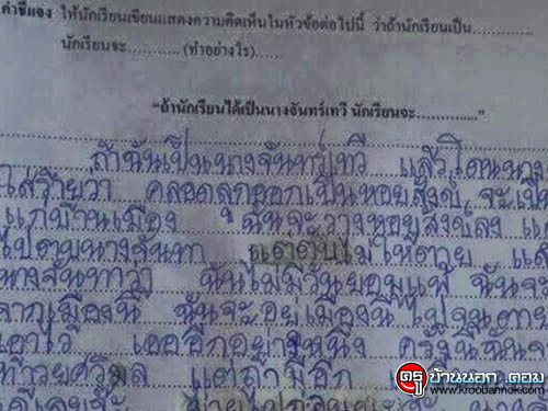 นี่คือชีวิตจริง! มาดูคำตอบเรื่องวรรณคดีไทย ของเด็กในยุคปัจจุบันที่ชาวเน็ตแชร์กระดาษคำตอบนี้กัน .... เมื่อเด็กไทยอินจัดวรรณคดีสังข์ทอง ตอบคำถาม "ถ้านักเรียนได้เป็นนางจันทร์เทวี นักเรียนจะ............" เจ้าตัวตอบ...จะวางหอยสังข์แล้วเข้าไปตบนางจันทา !!