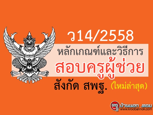 ว14/2558 หลักเกณฑ์และวิธีการสอบแข่งขันเพื่อบรรจุและแต่งตั้งบุคคลเข้าราชการเป็นข้าราชการครูและบุคคลากรทางการศึกษา ตำแหน่งครูผู้ช่วย สังกัดสำนักงานคณะกรรมการการศึกษาขั้นพื้นฐาน