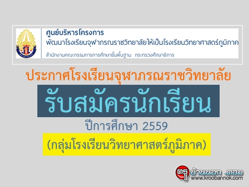 ประกาศโรงเรียนจุฬาภรณราชวิทยาลัยรับสมัครนักเรียนปีการศึกษา 2559 (กลุ่มโรงเรียนวิทยาศาสตร์ภูมิภาค)