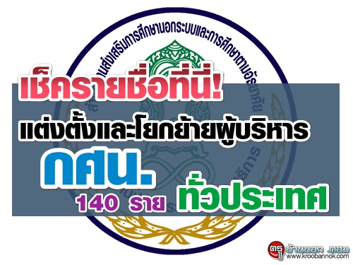 เลขาธิการ กศน.เผย ปลัด ศธ.เซ็นคำสั่งแต่งตั้งและโยกย้ายข้าราชการและบุคลากรสังกัด กศน.ระดับผู้อำนวยและรองผู้อำนวยการ กศน.140 ราย