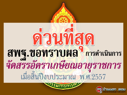 ด่วนที่สุด ที่ ศธ 04009/ว7 ขอทราบผลการดำเนินการจัดสรรอัตราเกษียณอายุราชการ เมื่อสิ้นปีงบประมาณ พ.ศ.2557