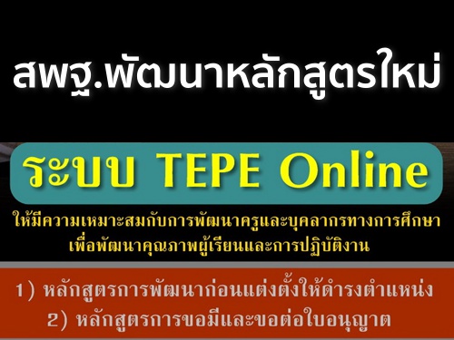 สพฐ. จึงได้จัดให้มีการประชุมเชิงปฏิบัติในครั้งนี้ ระหว่างวันที่ 1-5 มีนาคม 2559 โดยมีวัตถุประสงค์เพื่อพัฒนาหลักสูตรในระบบ TEPE Online ทั้งในส่วนของโครงสร้างและเนื้อหาให้มีความเหมาะสมกับการพัฒนาครูและบุคลากรทางการศึกษา เพื่อพัฒนาคุณภาพผู้เรียนและการปฏิบัติงาน ซึ่งประกอบด้วย