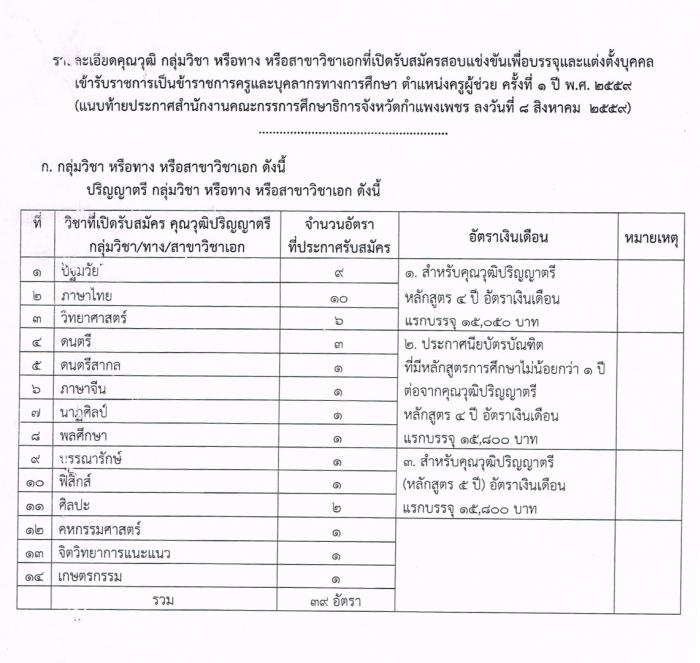 กศจ.กำแพงเพชร รับสมัครสอบแข่งขันเพื่อบรรจุบุคคลเข้ารับราชการข้าราชการครูและบุคลากรทางการศึกษา ตำแหน่งครูผู้ช่วย ครั้งท่ี 1 ปี พ.ศ.2559