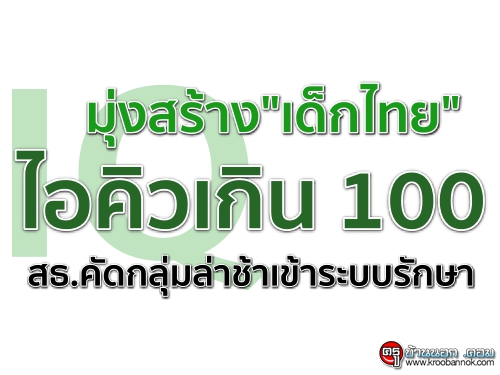 กระทรวงสาธารณสุขสร้างเด็กไทยไอคิวเกิน 100 หลังพบเด็กปฐมวัยร้อยละ 1 พัฒนาการล่าช้า ต้องได้รับการดูแลใกล้ชิดจากผู้เชี่ยวชาญ "ปิยะสกล"กำชับกรมสุขภาพจิตเร่งคัดกรองนำเข้าสู่กระบวนการรักษา