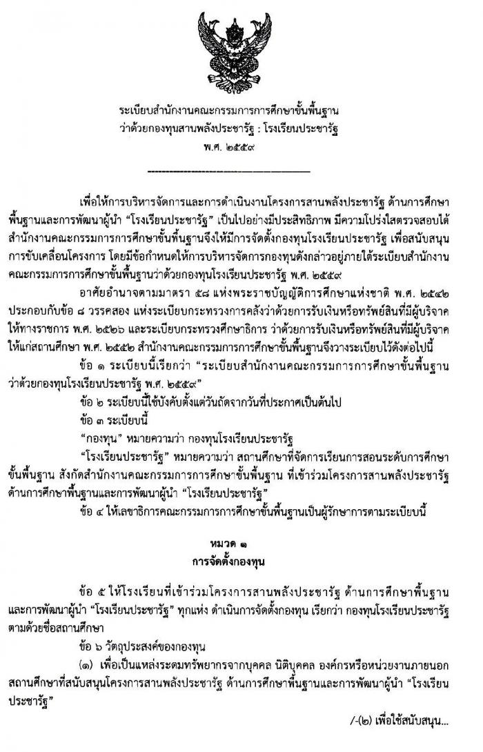การประกาศใช้ระเบียบกองทุนสานพลังประชารัฐ : โรงเรียนประชารัฐ และคู่มือกองทุนโรงเรียนประชารัฐ