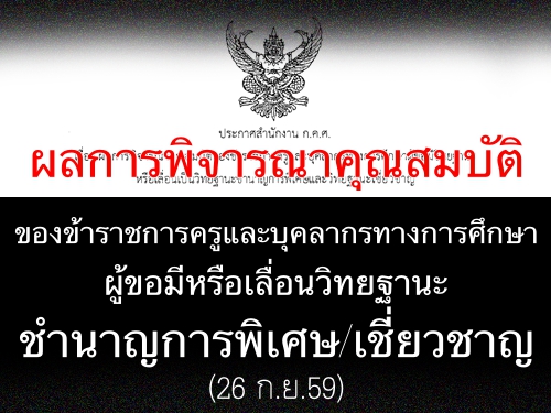 ผลการพิจารณาคุณสมบัติของข้าราชการครูและบุคลากรทางการศึกษาผู้ขอมีวิทยฐานะ หรือเลื่อนเป็นวิทยฐานะชำนาญการพิเศษและวิทยฐานะเชี่ยวชาญ