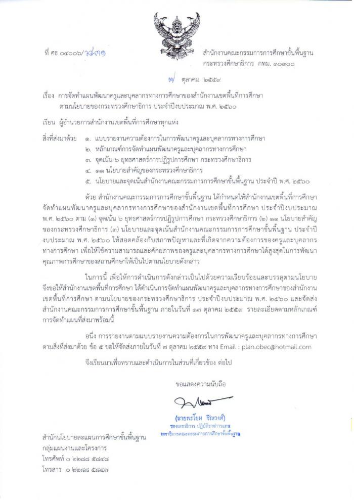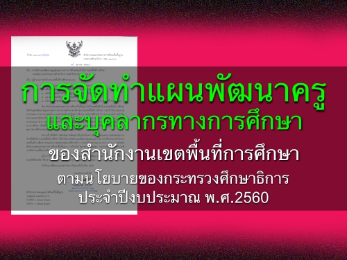 การจัดทำแผนพัฒนาครูและบุคลากรทางการศึกษาของสำนักงานเขตพื้นที่การศึกษาตามนโยบายของกระทรวงศึกษาธิการ ประจำปีงบประมาณ พ.ศ.2560