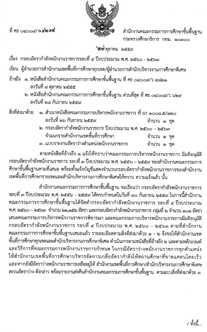 ที่ ศธ 04009/ว 1214 ลว. 27 ต.ค. 2559 เรื่องกรอบอัตรากำลังพนักงานราชการรอบที่ 4 ปีงบประมาณ พ.ศ. 2560 - 2563