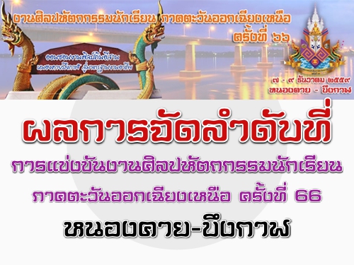 ผลการจัดลำดับที่การแข่งขันงานศิลปหัตถกรรมนักเรียนภาคตะวันออกเฉียงเหนือ ครั้งที่ 66 หนองคาย-บึงกาฬ