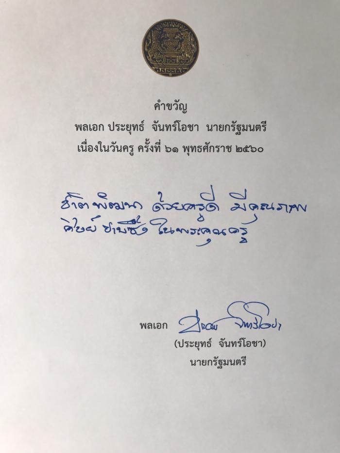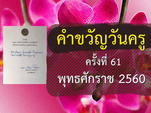 พลเอก ประยุทธ์ จันทร์โอชา นายกรัฐมนตรี ได้มอบคำขวัญเนื่องในวันครู ครั้งที่ 61 พุทธศักราช 2560 ดังนี้