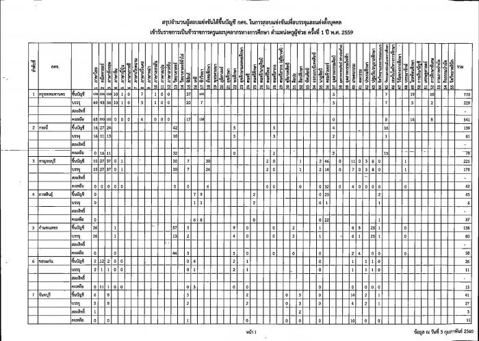 สรุปจำนวนผู้สอบแข่งขันได้ขึ้นบัญชี กศจ. ในการสอบแข่งขันเพื่อบรรจุและแต่งตั้งบุคคลเข้ารับราชการเป็นข้าราชการครูและบุคลากรทางการศึกษา ตำแหน่งครูผู้ช่วย ครั้งที่ 1 ปี พ.ศ.2559