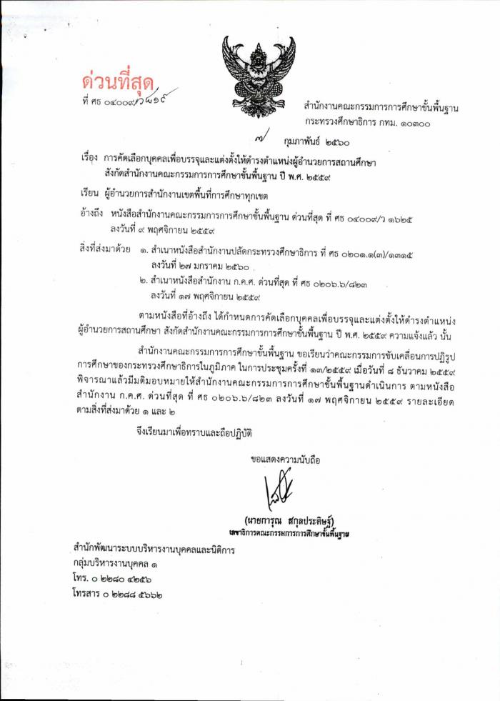 ด่วนที่สุด ที่ ศธ 04009/ว819 เรื่องการคัดเลือกบุคคลเพื่อบรรจุและแต่งตั้งให้ดำรงตำแหน่งผู้อำนวยการสถานศึกษา สังกัด สพฐ ปี พ.ศ.2559
