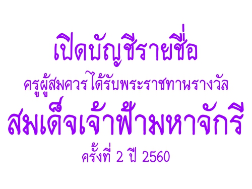 บัญชีรายชื่อ ครูผู้สมควรได้รับพระราชทานรางวัลสมเด็จเจ้าฟ้ามหาจักรี ครั้งที่ 2 ปี 2560 ที่ผ่านการพิจารณารับรองคุณสมบัติทั่วไป จานวน 157 คน