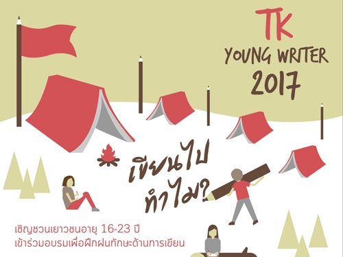 อุทยานการเรียนรู้ TK park ขอเชิญชวนเยาวชนอายุระหว่าง 16-23 ปี เข้าร่วมอบรมเพื่อฝึกฝนทักษะด้านการเขียน โดยมีนักเขียนชื่อดัง อาทิ วิภว์ บูรพาเดชะ (Happening), จักรพันธุ์ ขวัญมงคล (Hollywood Reporter), นครินทร์ นวกิจไพบูลย์ (The Momentum), กตัญญู สว่างศรี และ Studio Dialogue มาเป็นพี่เลี้ยง เป็นโค้ช และเป็นคนชี้แนะว่า “เราเขียนไปทำไม” เยาวชนที่ผ่านคัดเลือกจะได้ร่วมเข้าค่ายอบรม ระหว่างวันที่ 11-14 พฤษภาคม 2560 โดยไม่มีค่าใช้จ่ายใดๆ