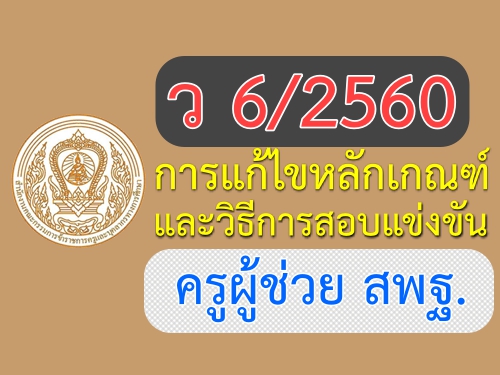 ว 6/2560 เรื่อง การแก้ไขหลักเกณฑ์และวิธีการสอบแข่งขันเพื่อบรรจุและแต่งตั้งบุคคลเข้ารับราชการเป็นข้าราชการครูและบุคลากรทางการศึกษา ตำแหน่งครูผู้ช่วย สังกัดสำนักงานคณะกรรมการการศึกษาขั้นพื้นฐาน