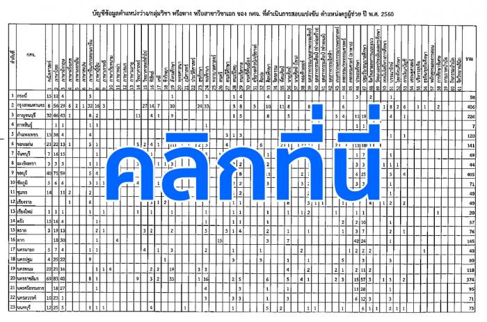 สำนักพัฒนาระบบบริหารงานบุคคลและนิติการ ได้เผยแพร่ข้อมูล บัญชีข้อมูลตำแหน่งว่าง/กลุ่มวิชา/วิชาเอก ที่ดำเนินการสอบแข่งขันครูผู้ช่วย สพฐ. รอบทั่วไป ปีพ.ศ.2560 ตรวจสอบได้ที่นี่