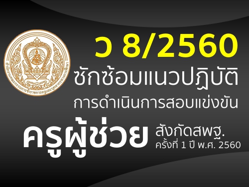 ว 8/2560 ซักซ้อมแนวปฏิบัติการดำเนินการสอบแข่งขันเพื่อบรรจุและแต่งตั้งบุคคลเข้ารับราชการเป็นข้าราชการครูและบุคลากรทางการศึกษา ตำแหน่งครูผู้ช่วย สังกัดสำนักงานคณะกรรมการการศึกษาขั้นพื้นฐาน ครั้งที่ 1 ปี พ.ศ. 2560
