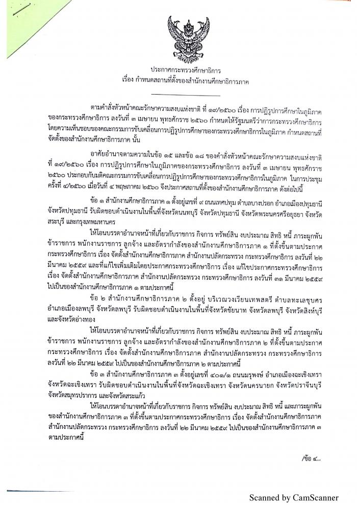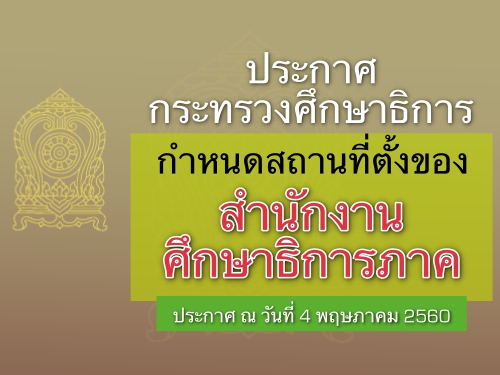ประกาศกระทรวงศึกษาธิการ เรื่อง กำหนดสถานที่ตั้งของสำนักงานศึกษาธิการภาค ประกาศ ณ วันที่ 4 พฤษภาคม 2560