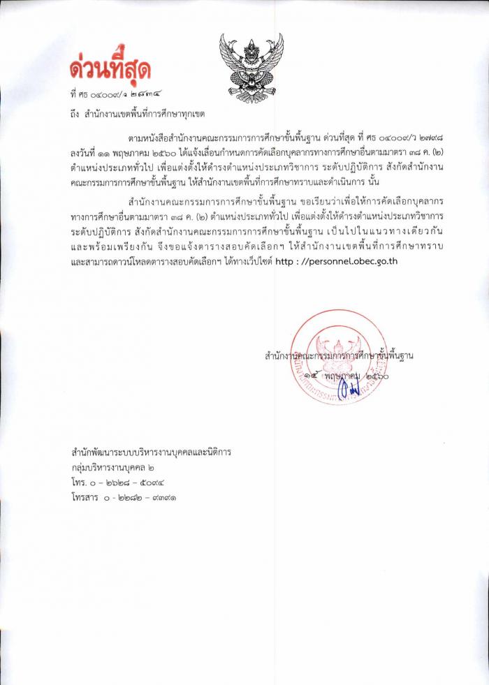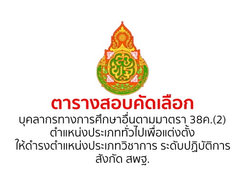 ตารางสอบคัดเลือกบุคลากรทางการศึกษาอื่นตามมาตรา 38ค.(2) ตำแหน่งประเภททั่วไปเพื่อแต่งตั้งให้ดำรงตำแหน่งประเภทวิชาการ ระดับปฏิบัติการ สังกัด สพฐ.