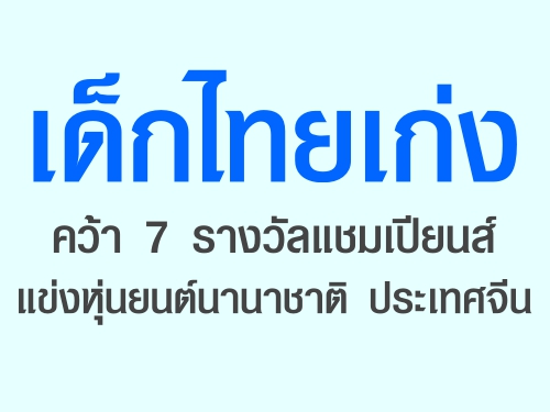 เด็กนักเรียนสังกัด สพฐ. คว้า 7 รางวัลแชมเปียนส์หุ่นยนต์บังคับมือ จากการแข่งขันหุ่นยนต์นานาชาติ ที่สาธารณรัฐประชาชนจีน