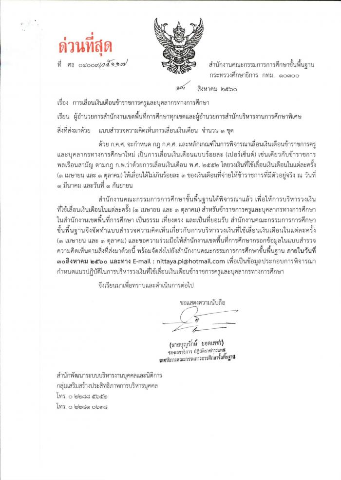 ด่วนที่สุด ที่ ศธ 04009/ว 5117 การเลื่อนเงินเดือนข้าราชการครูและบุคลากรทางการศึกษา
