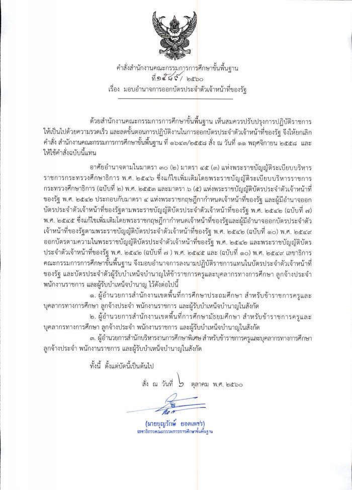 มอบอำนาจการออกบัตรประจำตัวเจ้าหน้าที่ของรัฐ