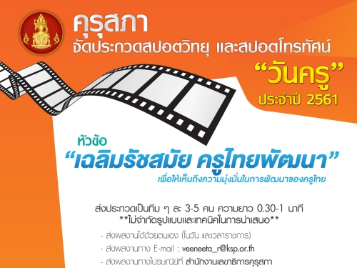 คุรุสภาจัดประกวดสปอตวิทยุ และสปอตโทรทัศน์วันครู ประจำปี 2561