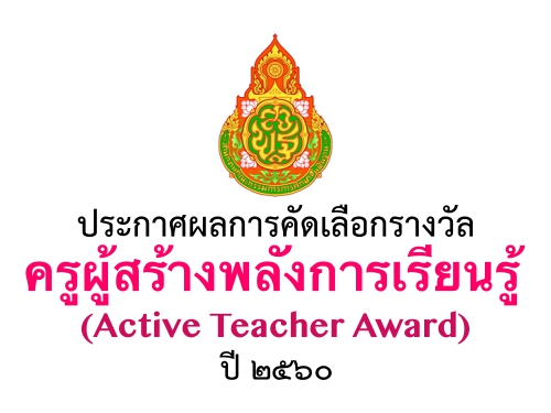 ประกาศผลการคัดเลือกรางวัล "ครูผู้สร้างพลังการเรียนรู้ (Active Teacher Award)" ปี ๒๕๖๐