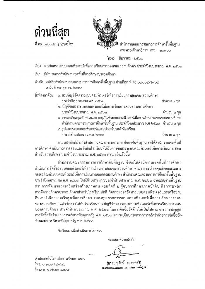 การจัดสรรระบบคอมพิวเตอร์เพื่อการเรียนการสอนของสถานศึกษา ประจำปีงบประมาณ พ.ศ. 2561