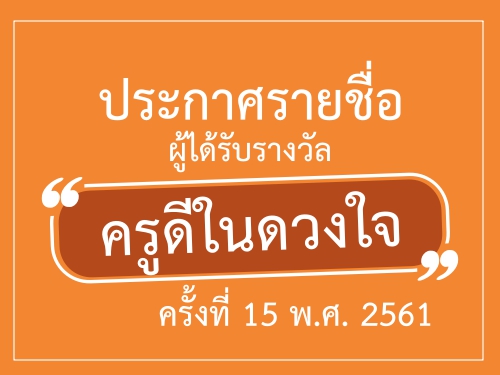 ประกาศรายชื่อผู้ได้รับรางวัล "ครูดีในดวงใจ" ครั้งที่ 15 พ.ศ. 2561