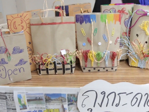 เยาวชนคนเก่งของเราเล่าว่า “หลังจากเปิดตัวโครงการนี้ที่โรงเรียน ตื่นเต้นมากว่าจะมีคนมาร่วมกับเราไหม ปรากฏว่าเพื่อนๆ ให้ความสนใจเยอะมาก คุณครูก็ให้ความช่วยเหลือและให้คำปรึกษาอย่างดี โดยกลุ่มนักเรียนแกนนำได้ร่วมกันจัดทำกล่องคัดแยกกระดาษไว้ 3 แบบ และวางไว้ในทุกห้องของโรงเรียน กล่องแรกสำหรับใส่กระดาษที่ใช้แล้วด้านเดียว กล่องที่สองใส่กระดาษที่ใช้แล้ว 2 ด้าน และกล่องสุดท้ายใส่กระดาษสี ทุกสิ้นเดือน ผมจะรวบรวมกระดาษที่ใช้แล้วจากทั้ง 3 กล่อง โดยกระดาษที่ใช้แล้ว 2ด้านและกระดาษสีจะนำไปขายและทำงานประดิษฐ์ ส่วนกระดาษที่ใช้ด้านเดียว จะนำไปทำสมุดทำมือ นอกจากนี้ ยังมีการต่อยอดนำผลงานจากกระดาษเหลือใช้ มาจัดเป็นนิทรรศการเพื่อแสดงให้เห็นว่ากระดาษเหลือใช้ สามารถนำกลับมาทำประโยชน์ได้อีกมากมาย”