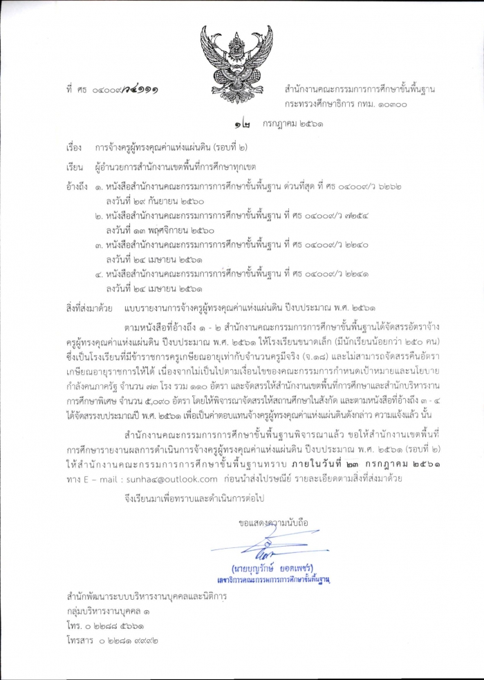 ที่ ศธ 04009/ว 4111 การจ้างครูผู้ทรงคุณค่าแห่งแผ่นดิน (รอบที่ 2)