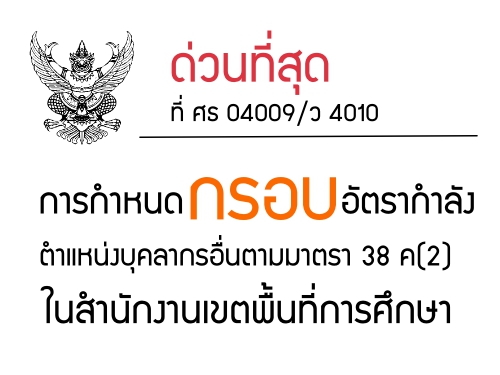 ด่วนที่สุด ที่ ศธ 04009/ว 4010 เรื่อง การกำหนดกรอบอัตรากำลัง ตำแหน่งบุคลากรอื่นตามมาตรา 38 ค(2) ในสำนักงานเขตพื้นที่การศึกษา