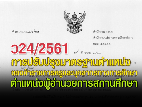 ว24/2561 การปรับปรุงมาตรฐานตำแหน่งของข้าราชการครูและบุคลากรทางการศึกษา ตำแหน่งผู้อำนวยการสถานศึกษา