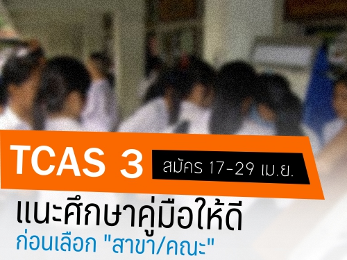 "ทั้งนี้ขอย้ำการสมัคร TCAS รอบ 3 จะมีความหลากหลายขอให้นักเรียนศึกษาคู่มือหลักเกณฑ์การคัดเลือกและคุณสมบัติพิเศษของแต่ละสาขาที่แต่ละมหาวิทยาลัยจะรับเด็กว่าเป็นอย่างไร ที่สำคัญในการเลือกสาขาวิชาที่จะเรียนนั้นต้องวิเคราะห์ให้ดีว่าตัวเองชอบและถนัดอะไร เพราะเป็นอาชีพของเราในอนาคต" นายพีระพงศ์กล่าว
