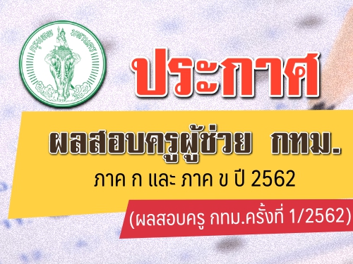 ประกาศสำนักงานคณะกรรมการข้าราชการกรุงเทพมหานคร เรื่อง ผลการสอบข้อเขียน ภาค ก และ ภาค ข เพื่อบรรจุและแต่งตั้งบุคคลเข้ารับราชการเป็นข้าราชการครูและบุคลากรทางการศึกษากรุงเทพมหานคร ตำแหน่งครูผู้ช่วย ครั้งที่ 1/2561