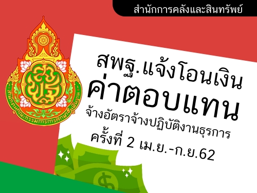 ที่ ศธ 04002/ว1844 ลงวันที่ 2 พฤษภาคม 2562 เรื่อง โอนเปลี่ยนแปลงการจัดสรรงบประมาณรายจ่าย งบประมาณปี 2562 ครั้งที่ 538 (ค่าตอบแทนจ้างอัตราจ้างปฏิบัติงานธุรการ ครั้งที่ 2 เม.ย.-ก.ย.62)