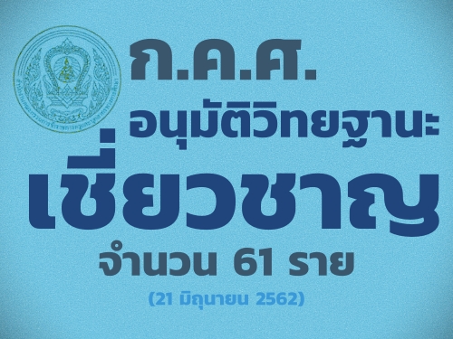 ก.ค.ศ. อนุมัติให้ข้าราชการครูและบุคลากรทางการศึกษามีและเลื่อนเป็นวิทยฐานะเชี่ยวชาญ จำนวน 61 ราย